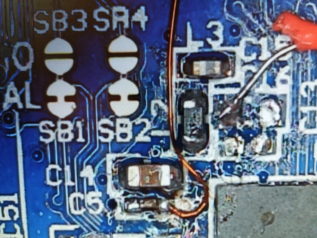 Under the binocular to solder wires on DEC1 (CPU Power) and DEC4 (System Power).