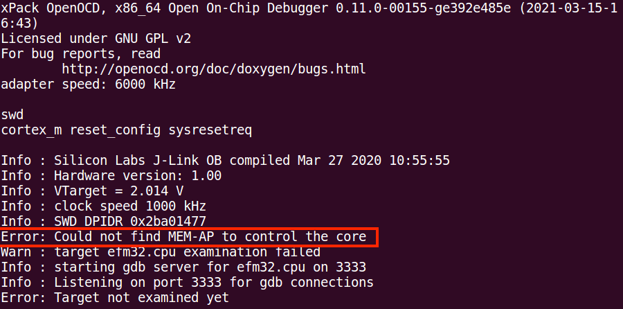 Once locked, OpenOCD cannot connect to the target: