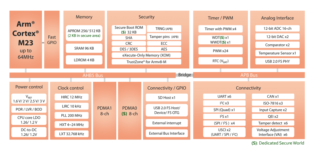 Nuvoton is fabless company based in Taiwan. The NuMicro M2351, based on Arm Cortex-M23, is the first series in the Family to realise robust IoT security applications, empowered by the Arm TrustZone for Armv8-M architecture.