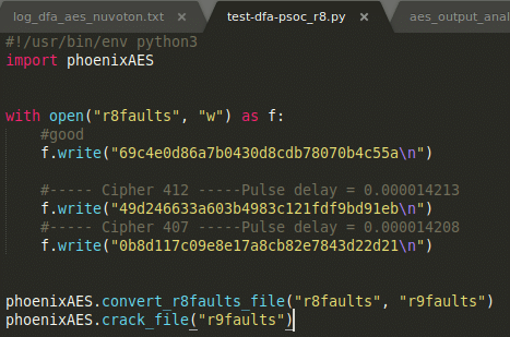 The PhoenixAES from @doegox is then used to perform Differential Fault analysis (DFA):