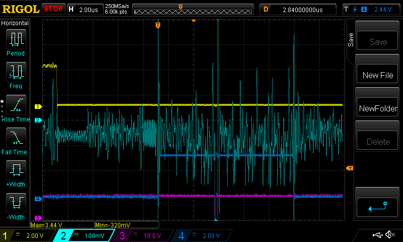 Here is a view of the scope during the fault session, where I focus on the esp_aes_setkey_hardware():