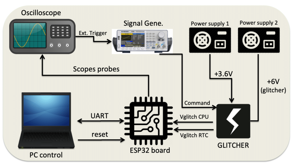 To reproduce this exploit, I can only use fault injection because it's the only way to interact with the ESP32 bootROM code (no control otherwise).