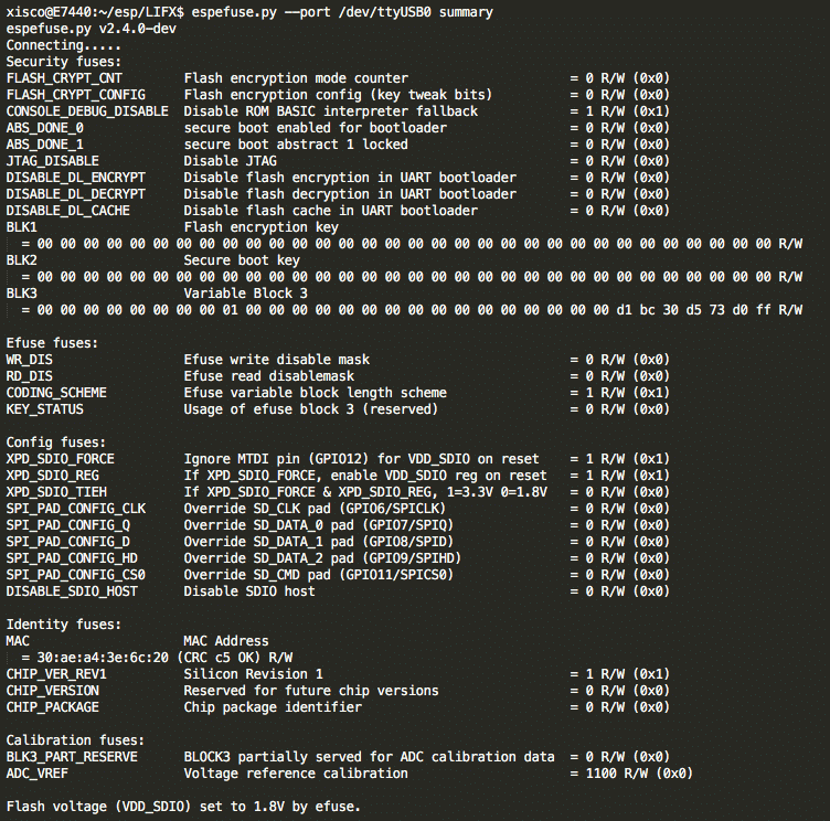 espefuse.py --port /dev/ttyUSB0 summary