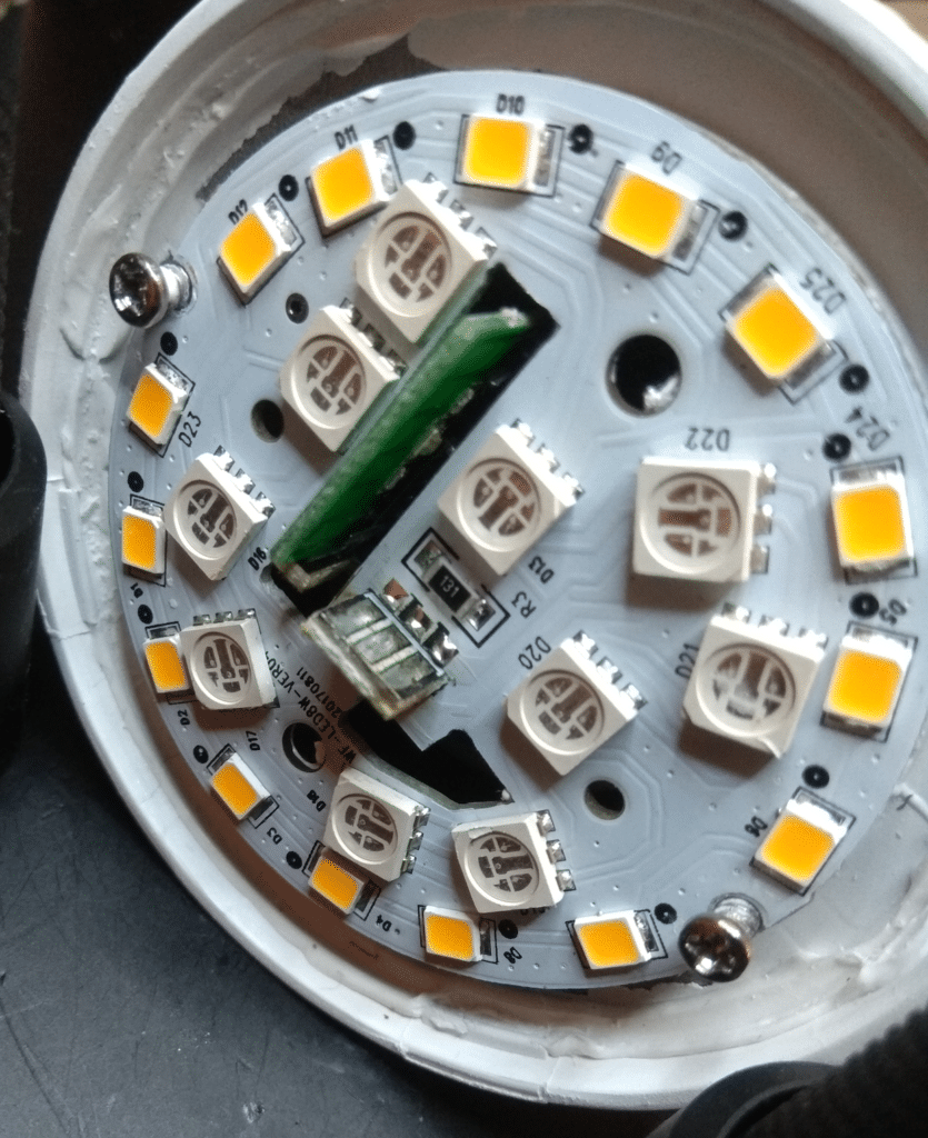 I removed the white cap and I unsolder the top of the LED PCB to access to the module: