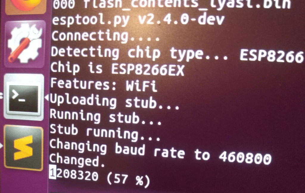 To obtain log messages during the boot, I attach the COM port to the terminal Coolterm (74880 8N1). The baudrate is weird due to the 26MHz Quartz used by the ESP8266.