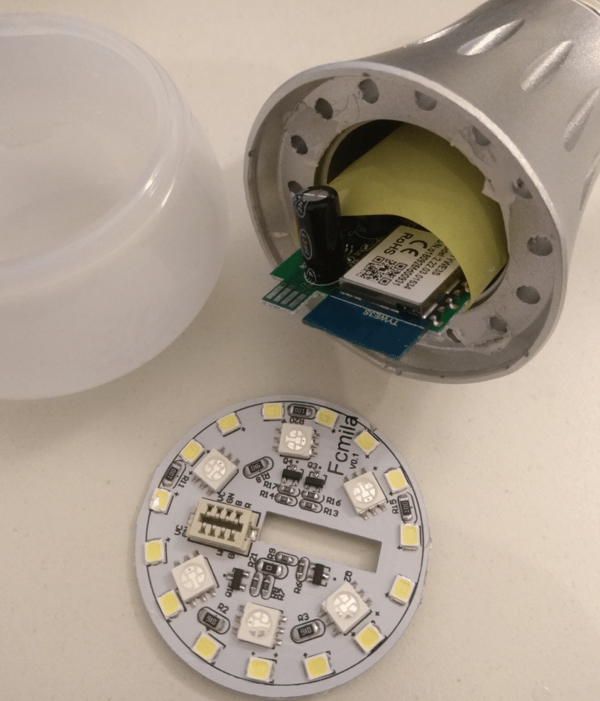 Here, it is interesting to see two different lightbulbs, having two different hardware designs based on the same SoC, and coming from two different manufacturers, embeds exactly the same firmware.
